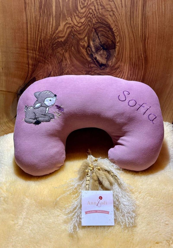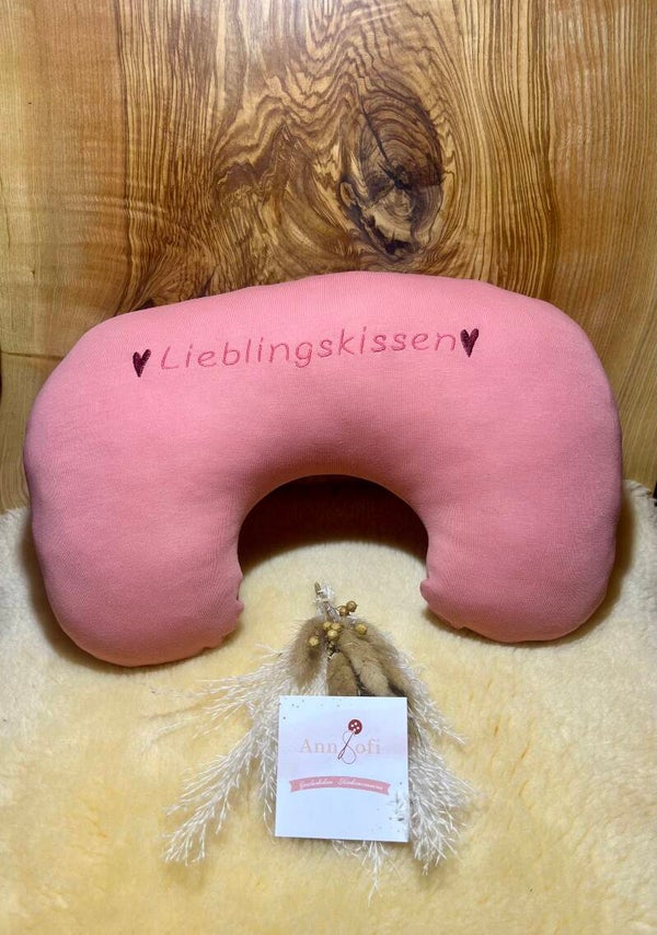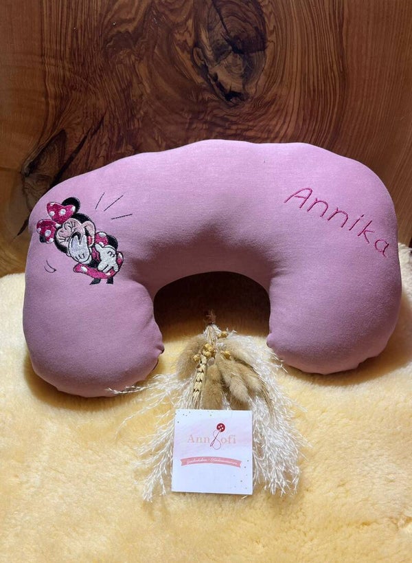 Das Nackenkissen kann wahlweise mit einem Motiv und/oder Namen personalisiert werden.
